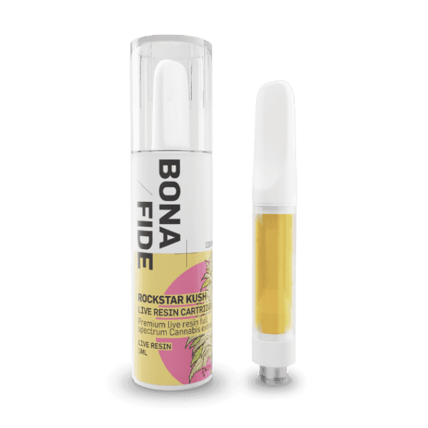Bonafide Live Resin Cartridge – Rockstar Kush serves up clean extraction with true-to-strain flavour for smooth, dependable vapor from a 1-gram 510-thread cartridge. Expect steady performance and satisfying terpene character in every pull.
