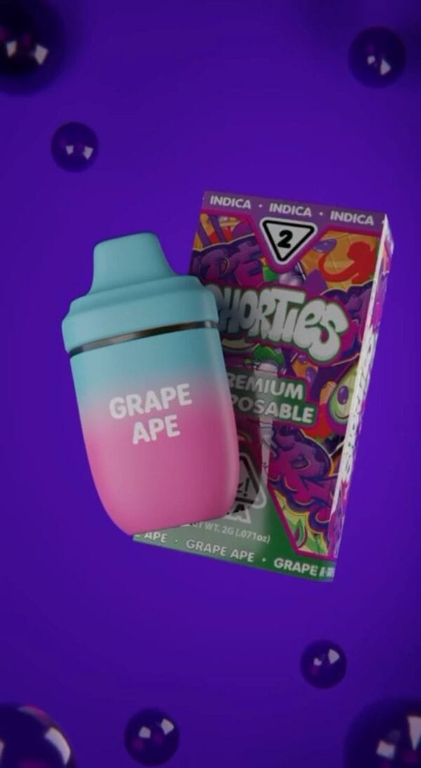 Shorties Disposable Vape, Prepare to be captivated by the exceptional lineage of Shorties Disposable Grape Ape . This extraordinary strain is a product of the illustrious Afghani, hybrid Skunk No. 1, and potentially the renowned Mendocino Purps. Some enthusiasts even believe it to be a phenotype of the iconic Grand Daddy Purple. With such esteemed parentage, Grape Ape boasts a genetic profile that is as intriguing as it is impressive. Each inhale of Shorties Grape Ape delivers a sensory experience that pays homage to its legendary lineage, making it a must-have for cannabis aficionados seeking the ultimate indulgence.